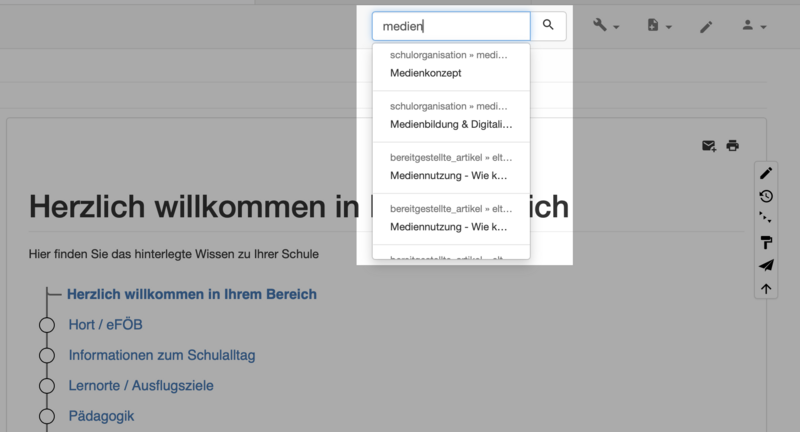 - Tippt einfach einen oder mehrere Begriffe in dieses Feld ein (z. B. „Brandschutzordnung“, „Ausflugsziele Thema Natur“ oder „Medienkonzept“).