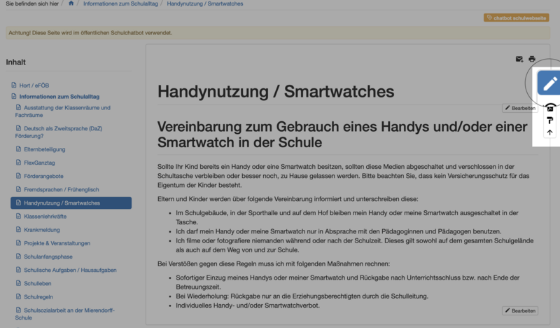 Um eine vorhandene Seite zu bearbeiten, klickt ihr einfach auf das Stift-Symbol an der rechten Seite des Inhalts. Ihr könnte anschließend den Text überarbeiten und ergänzen und anschließend die Änderungen speichern, so dass sie für alle zur Verfügung stehen.